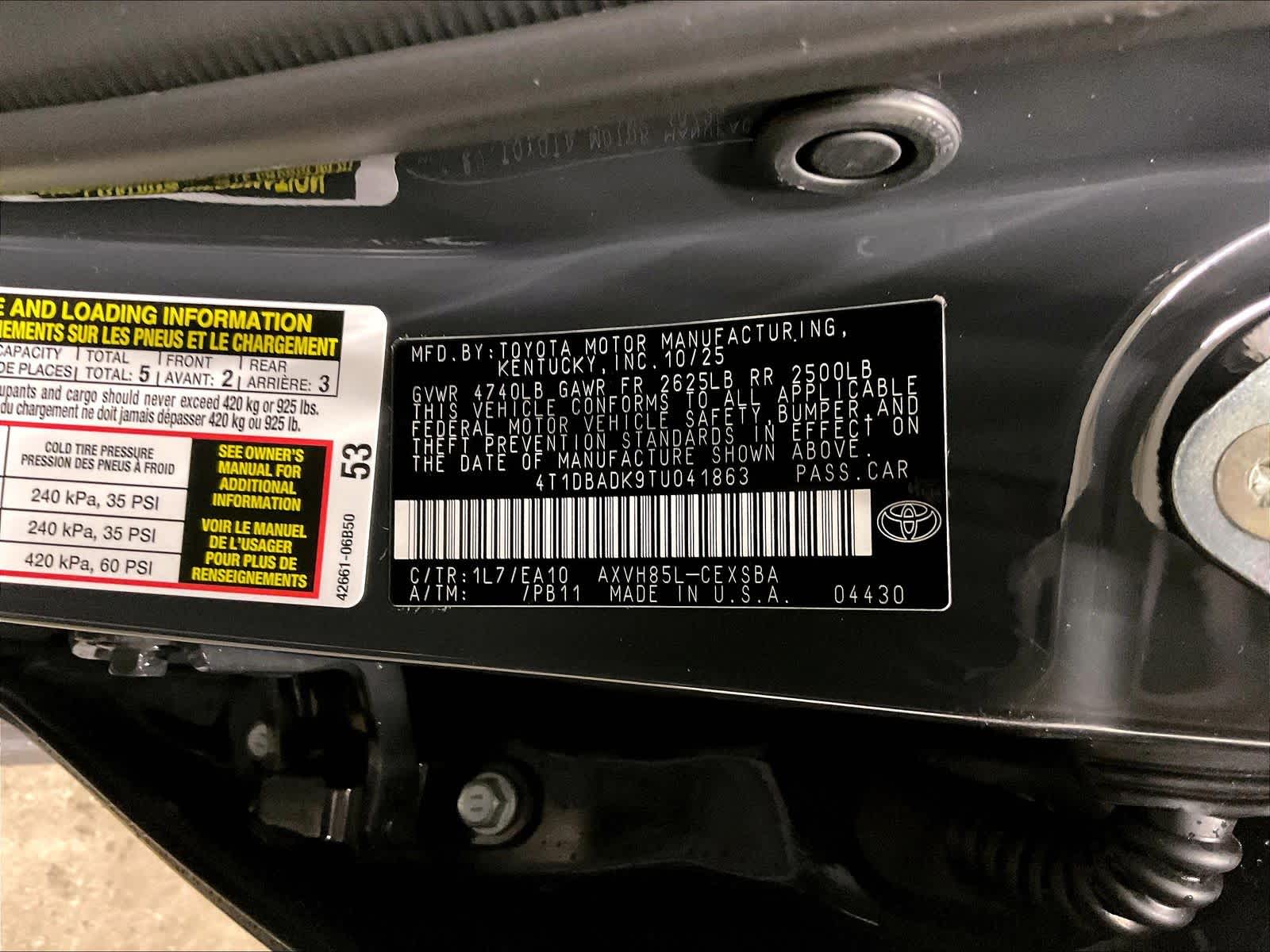 SE | 3 milesStock # N0300383 | VIN # 4T1DBADK9TU041863