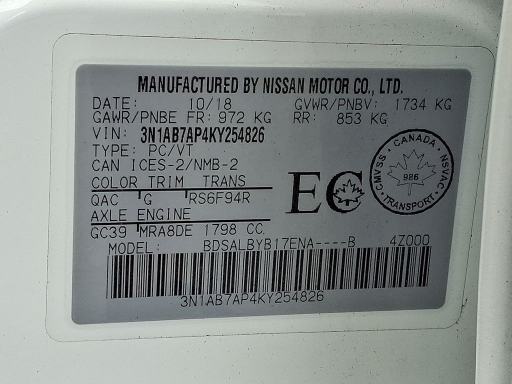 S | 7,765 milesStock # PUN693 | VIN # 3N1AB7AP4KY254826