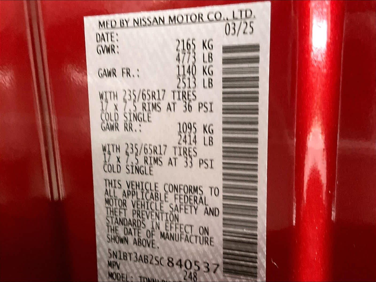 S | 2,038 milesStock # U1500212 | VIN # 5N1BT3AB2SC840537