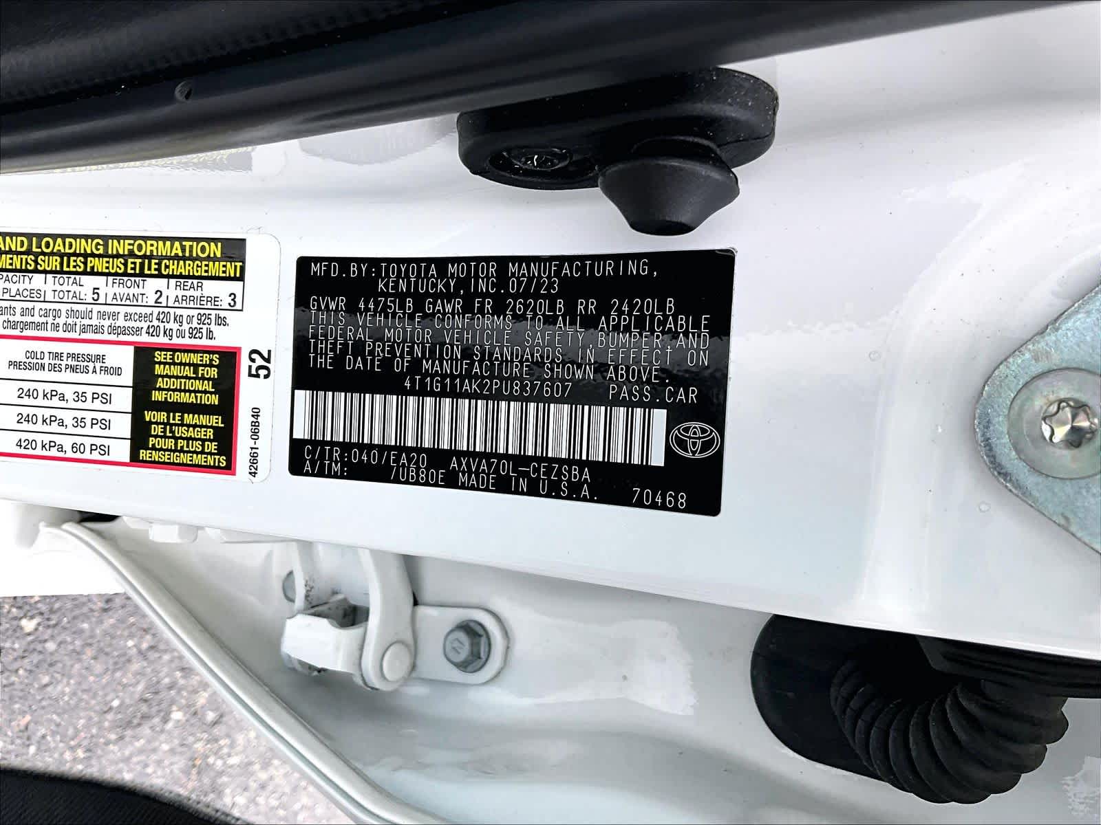 SE | 46,085 milesStock # U0800353 | VIN # 4T1G11AK2PU837607