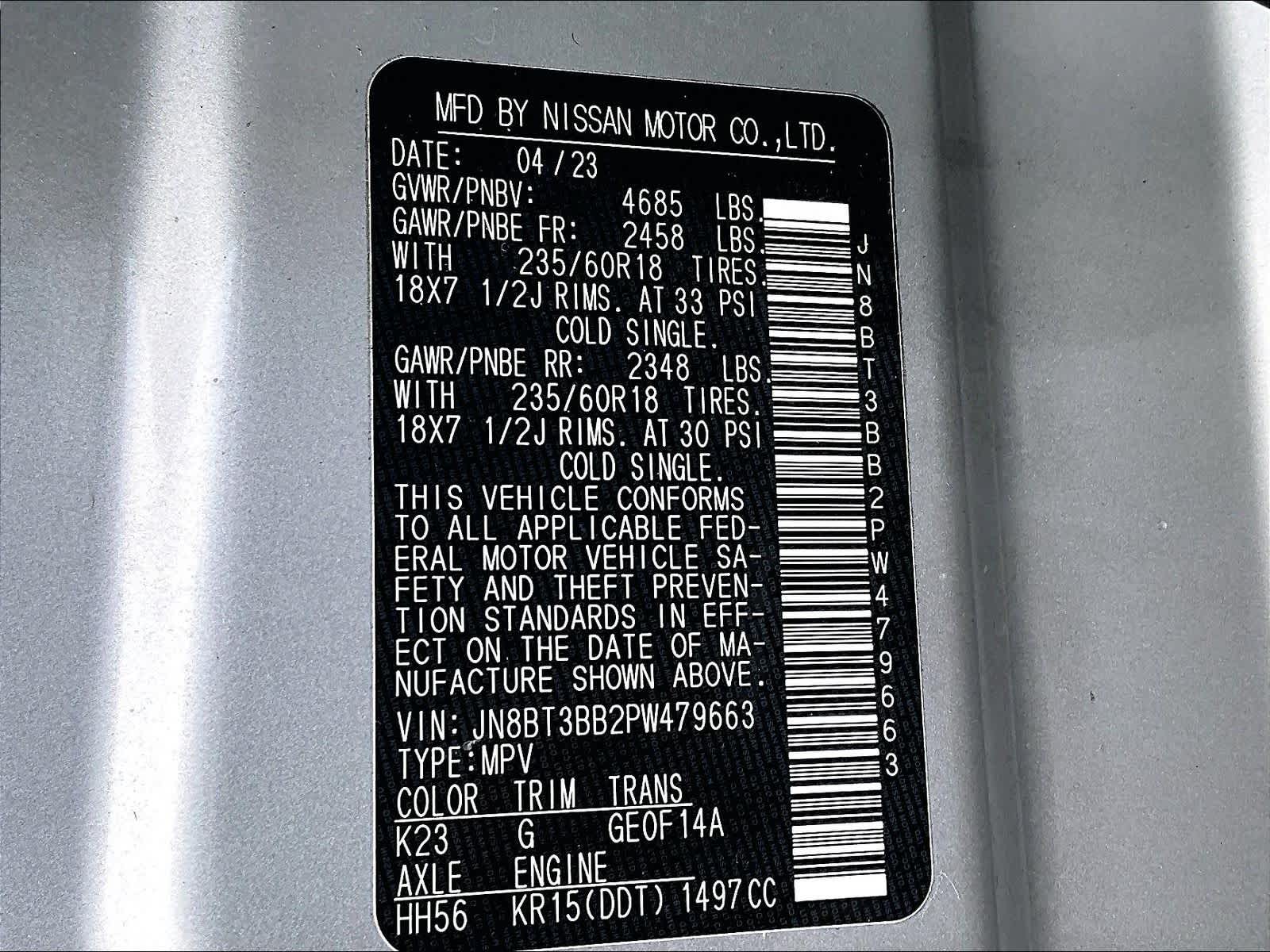 SV | 54,216 milesStock # U1400094 | VIN # JN8BT3BB2PW479663