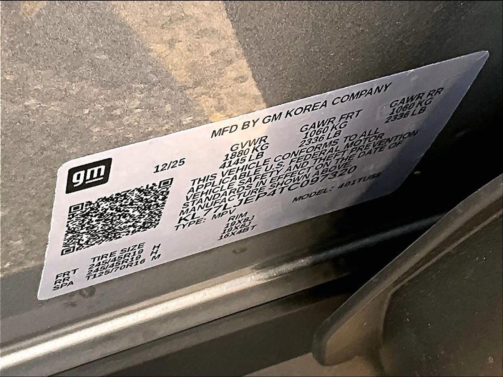 2RS | 5 milesStock # N2300190 | VIN # KL77LJEP4TC097320