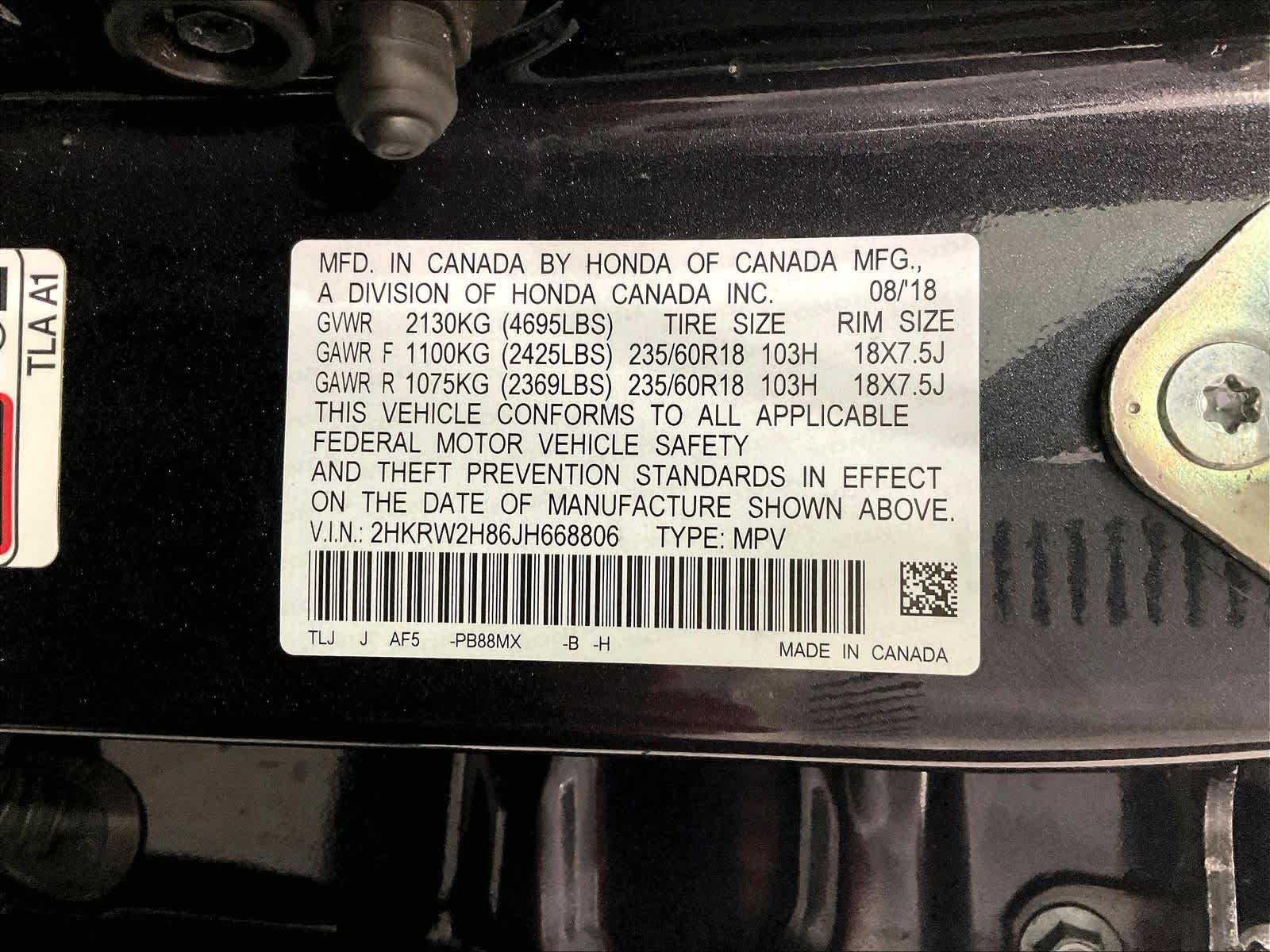 EX-L | 97,797 milesStock # U0500277A | VIN # 2HKRW2H86JH668806