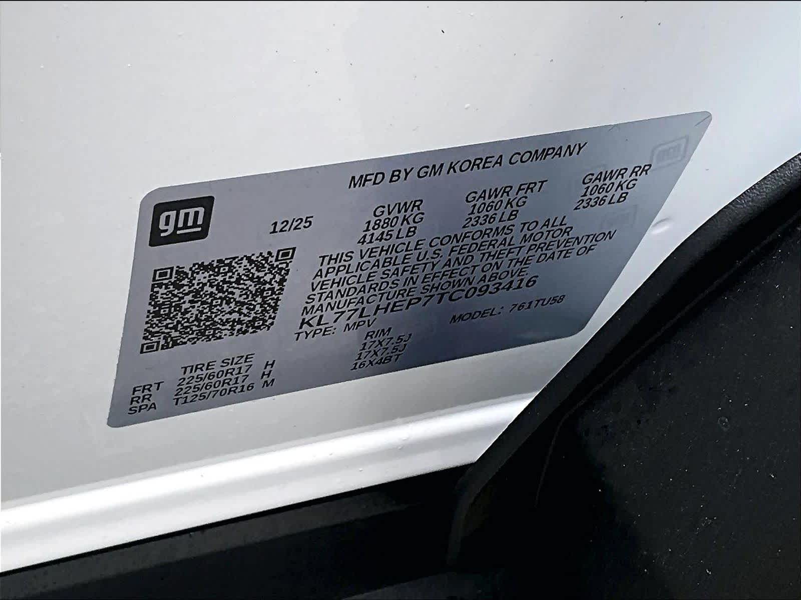 LT | 5 milesStock # N2300206 | VIN # KL77LHEP7TC093416