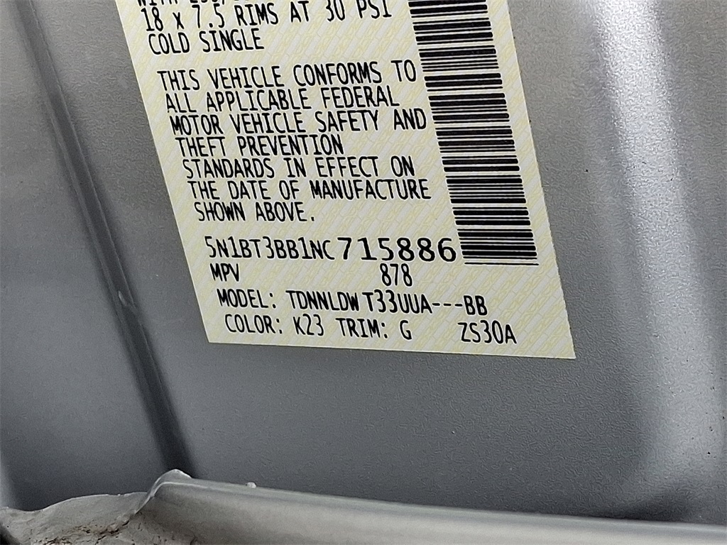 SV | 31,355 milesStock # UN409 | VIN # 5N1BT3BB1NC715886