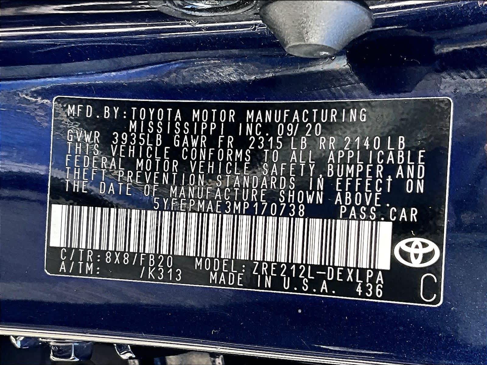 LE | 71,830 milesStock # N0800844A | VIN # 5YFEPMAE3MP170738