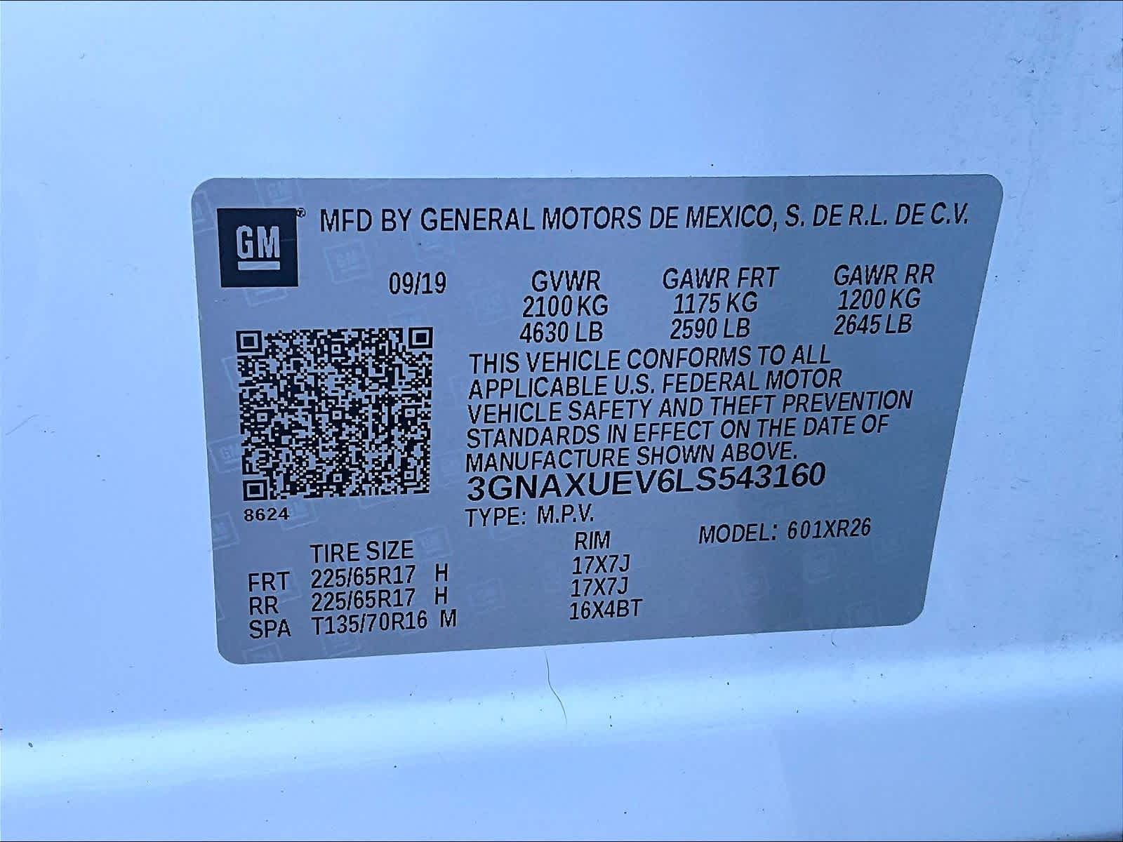 LT | 95,656 milesStock # N1400055A | VIN # 3GNAXUEV6LS543160