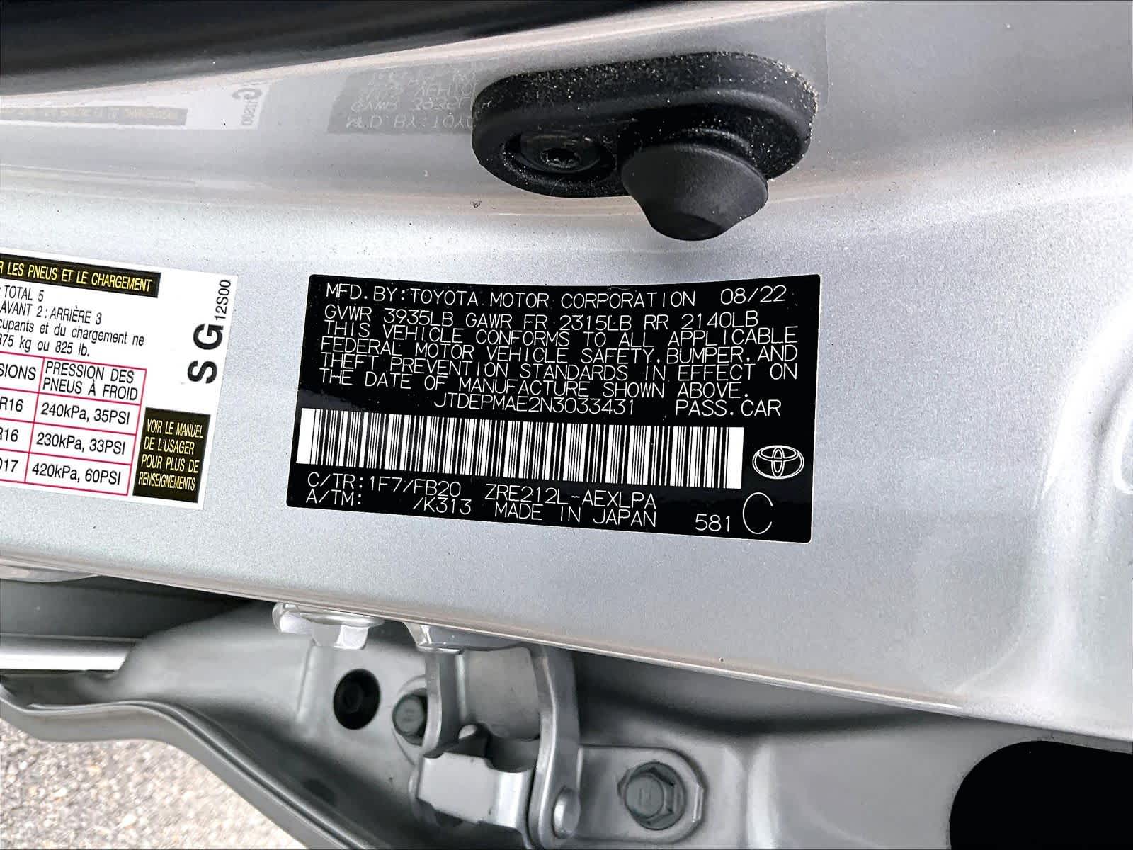 LE | 26,579 milesStock # U1300175A | VIN # JTDEPMAE2N3033431