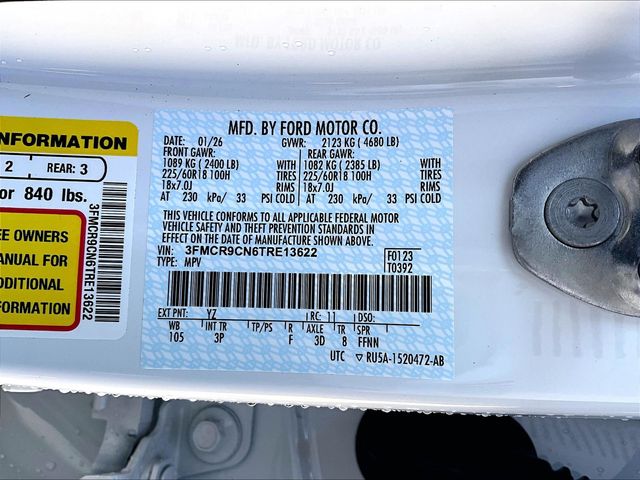 Outer Banks | 3 milesStock # NL2038 | VIN # 3FMCR9CN6TRE13622