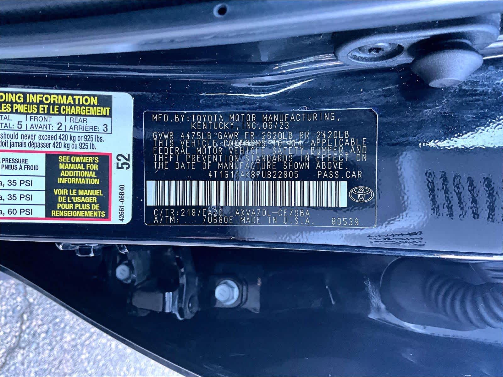 SE | 49,798 milesStock # U0300395 | VIN # 4T1G11AK8PU822805